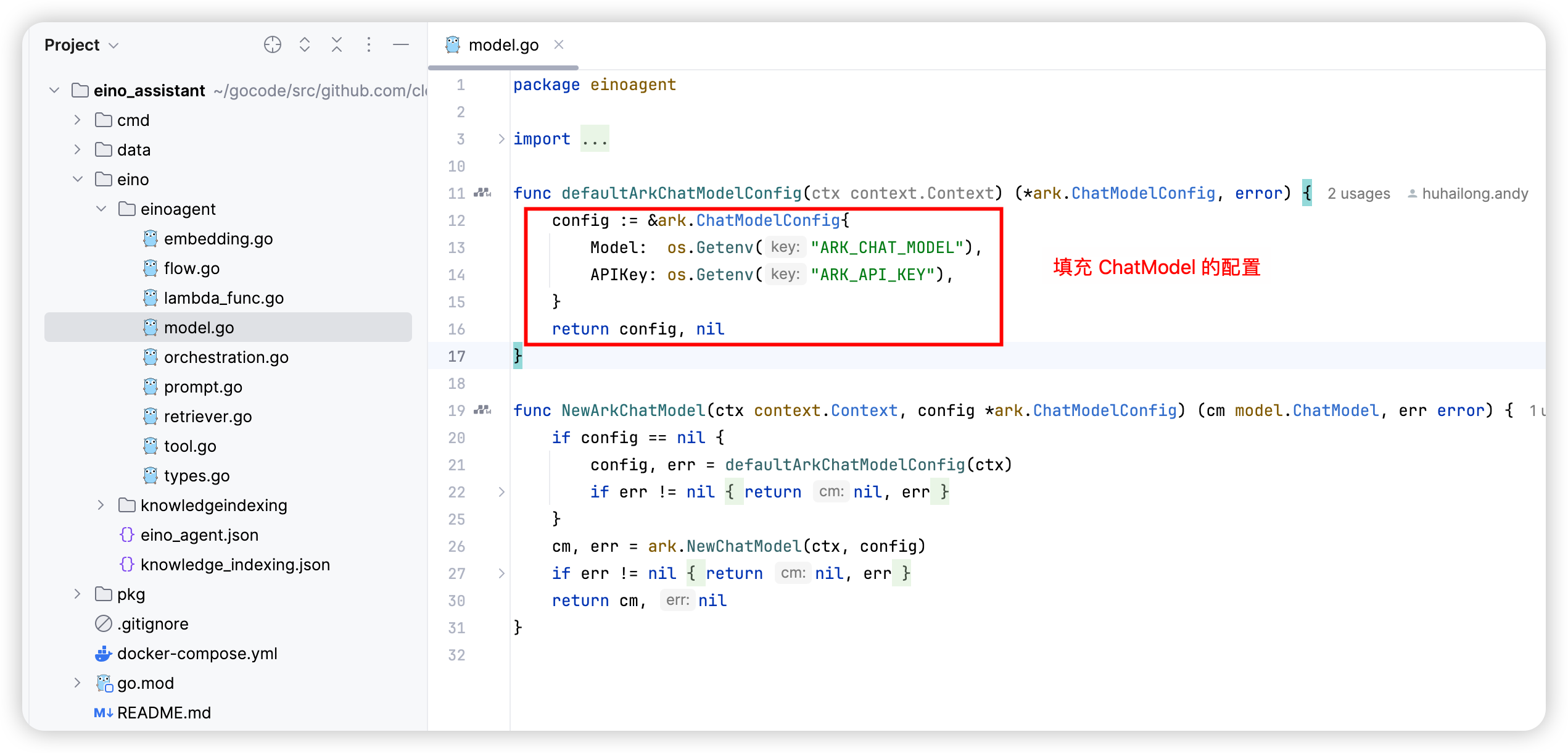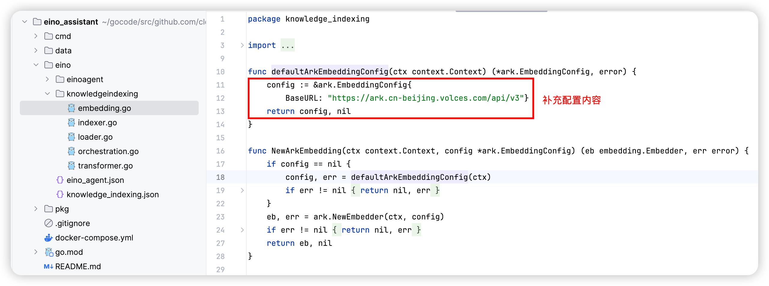 cd eino-examples/eino_assistant # Enter the example of Eino assistant
