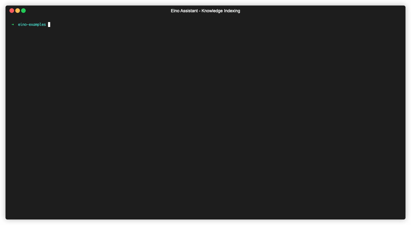 # As the example Markdown file is stored in the cmd/knowledgeindexing/eino-docs directory, and the code specifies the relative path eino-docs, you need to run the command in the cmd/knowledgeindexing directory