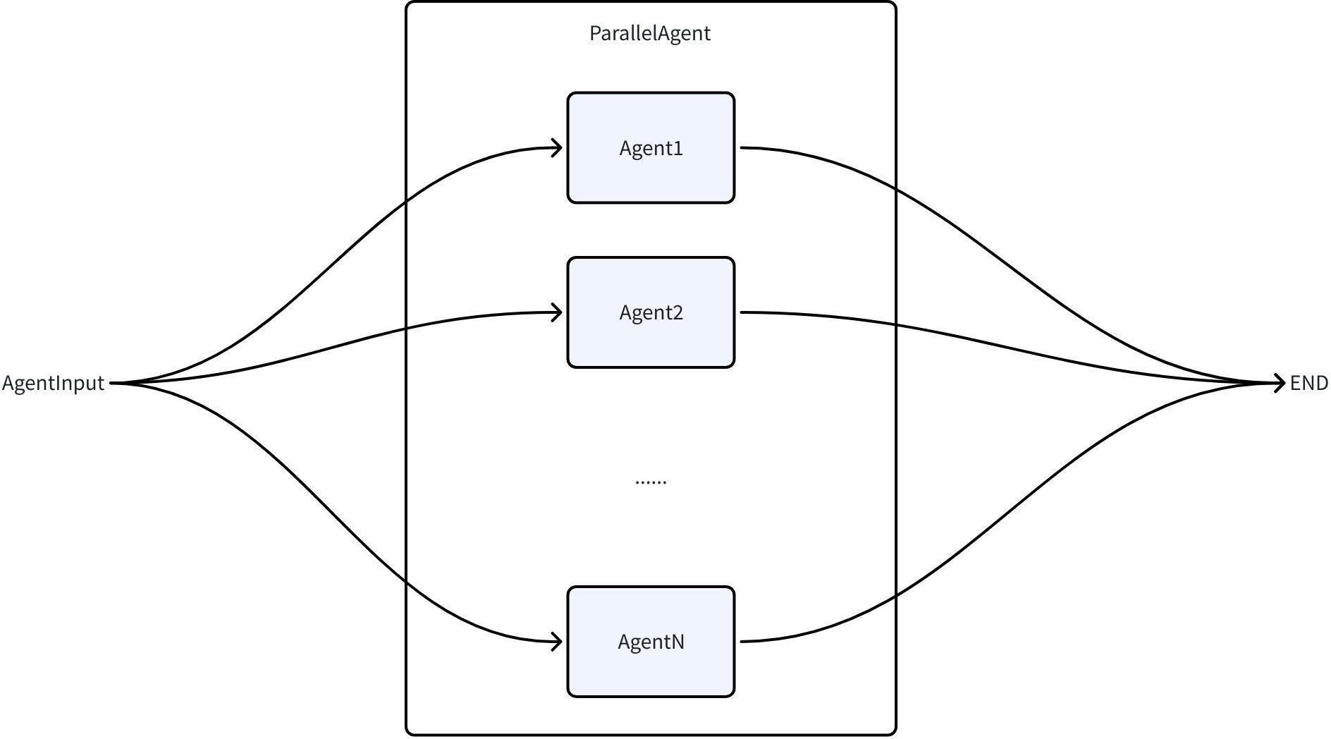 Parallel将用户提供的 SubAgents 列表,组合成基于相同上下文,并发执行的 Parallel Agent,其中的 Name 和 Description 作为 Parallel Agent 的名称标识和描述。Parallel Agent 执行时,将 SubAgents 列表,并发执行,待所有 Agent 执行完成后结束。Transfer上游 Agent 全对话预设决策